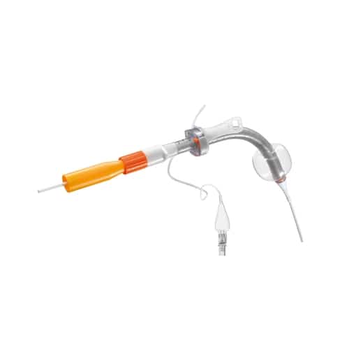 TRACOE vario XL tracheostomy cannula with adjustable shield, low-pressure cuff , X-ray contrast strips, graduations and 15 mm connector.